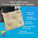 Car seat cushions are intended to add additional comfort and support while driving, relieving pressure off of the back, hips, and thighs and helping improve posture during long car journeys.